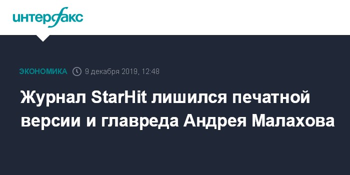 Журнал StarHit лишился печатной версии и главреда Андрея Малахова