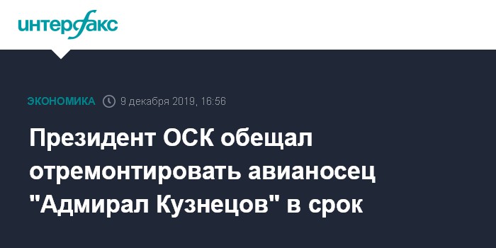 Москва. 9 декабря. INTERFAX.RU - Ремонт авианосца "Адмирал Кузнецов" идет по графику и должен быть завершен в срок, в 2022 году, сообщил президент Объединенной судостроительной корпорации (ОСК) Алексей Рахманов.