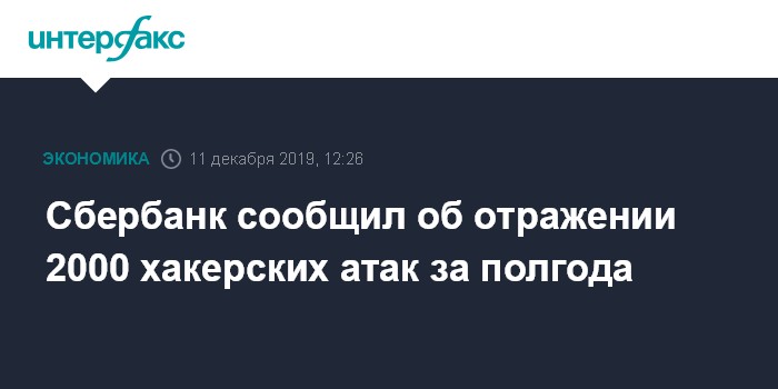 Москва. 11 декабря. INTERFAX.RU - В I полугодии 2019 года Сбербанк отразил больше 2000 кибератак, говорится в презентации кредитной организации, подготовленной ко Дню аналитика.
