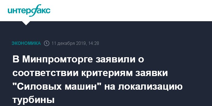 В Минпромторге заявили о соответствии критериям заявки "Силовых машин" на локализацию турбины