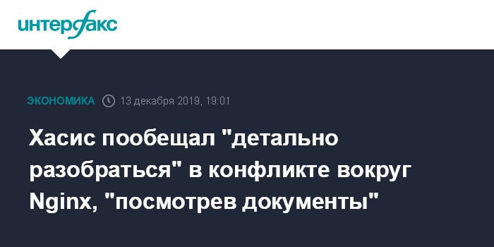 Хасис пообещал "детально разобраться" в конфликте вокруг Nginx, "посмотрев документы"