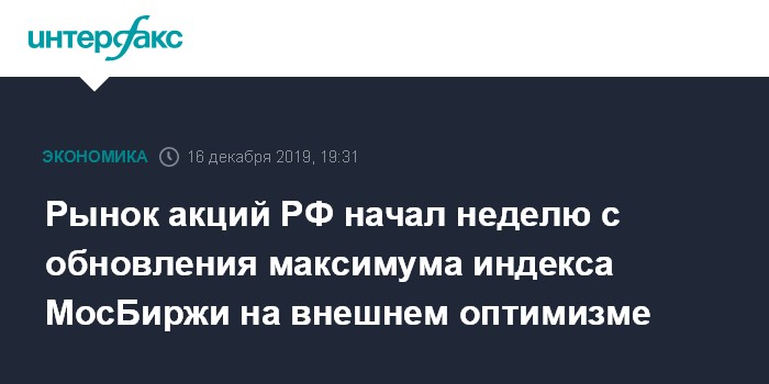 Рынок акций РФ начал неделю с обновления максимума индекса МосБиржи на внешнем оптимизме