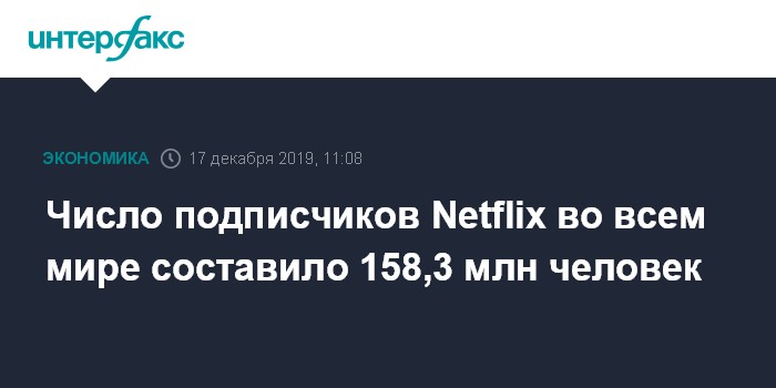Москва. 17 декабря. INTERFAX.RU - Количество подписчиков сервиса потокового видео Netflix Inc. в мире составило 158,3 млн человек. Компания представила новые детальные данные об аудитории и выручке за пределами США, стремясь заострить внимание аналитиков и инвесторов Уолл-стрит на росте компании на других рынках.