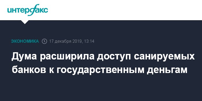 Москва. 17 декабря. INTERFAX.RU - Депутаты Госдумы приняли в третьем чтении пакет законопроектов о послаблениях для банков, которые проходят санацию с участием Банка России. Если поправки вступят в силу, банка разрешат работать со вкладами ряда государственных корпораций и выдавать гарантии уплаты налоговых платежей.