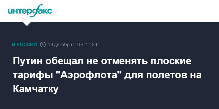 Путин обещал не отменять плоские тарифы "Аэрофлота" для полетов на Камчатку