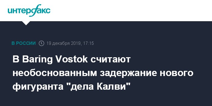 В Baring Vostok считают необоснованным задержание нового фигуранта "дела Калви"