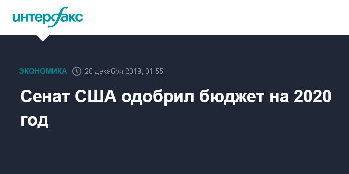 Москва. 20 декабря. INTERFAX.RU - Сенат США в четверг, 19 декабря, принял федеральный бюджет на 2020 год, сообщает Associated Press.