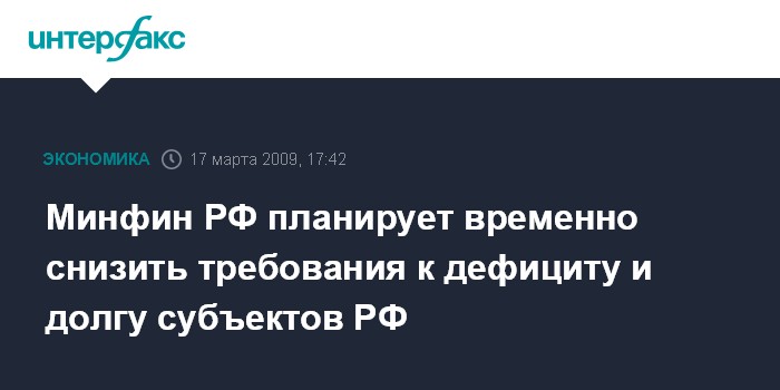 Минфин РФ планирует временно снизить требования к дефициту и долгу субъектов РФ