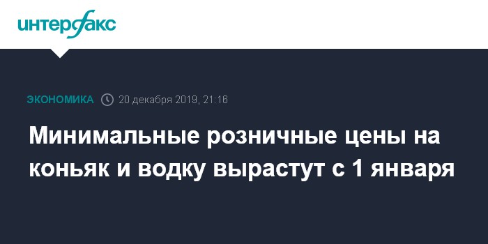 В октябре 2019 года стало известно, что в Минфине предложили с 2020 года повысить минимальную розничную цену на водку до 230 рублей за бутылку (0,5 литра). В ведомстве также не исключили повышения и минимальной розничной цены на коньяк до 420-430 рублей за бутылку.