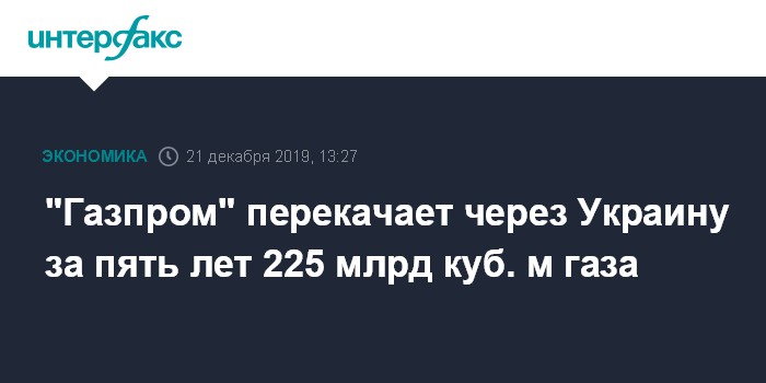 Соглашение также предусматривает транзит через Украину 225 млрд кубометров российского газа в течение пяти лет.