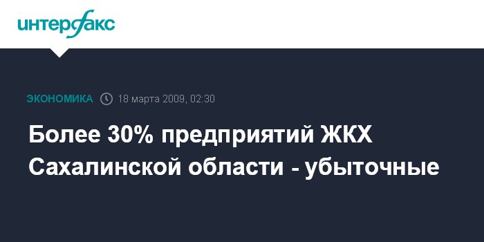 Южно-Сахалинск. 18 марта. ИНТЕРФАКС-ДАЛЬНИЙ ВОСТОК - Доля убыточных предприятий в ЖКХ Сахалинской области составляет 34,2%, сообщили агентству "Интерфакс-Дальний Восток" в управлении информации обладминистрации.