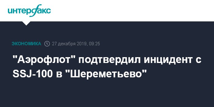 "Аэрофлот" подтвердил инцидент с SSJ-100 в "Шереметьево"