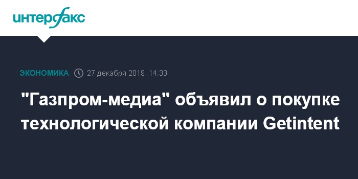 Москва. 27 декабря. INTERFAX.RU - Холдинг "Газпром-медиа" (ГПМ) объявил о покупке разработчика решений для интернет-рекламы Getintent, говорится в сообщении пресс-службы ГПМ.