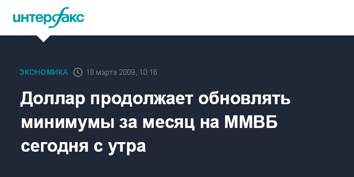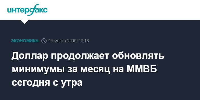 Доллар продолжает обновлять минимумы за месяц на ММВБ сегодня с утра