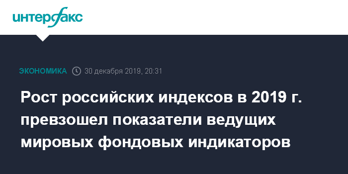 Рост российских индексов в 2019 г. превзошел показатели ведущих мировых фондовых индикаторов