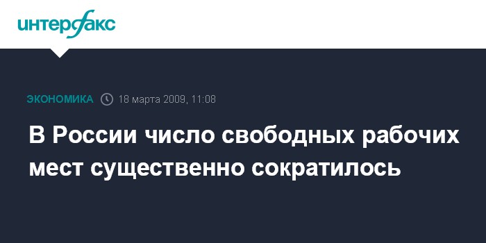 Москва. 18 марта. INTERFAX.RU - Количество свободных рабочих мест на российском рынке труда по сравнению с 2008 годом сократилось почти на полмиллиона, сообщил глава Роструда Юрий Герций.