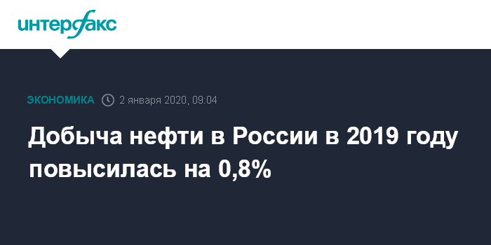 Добыча нефти в России в 2019 году повысилась на 0,8%