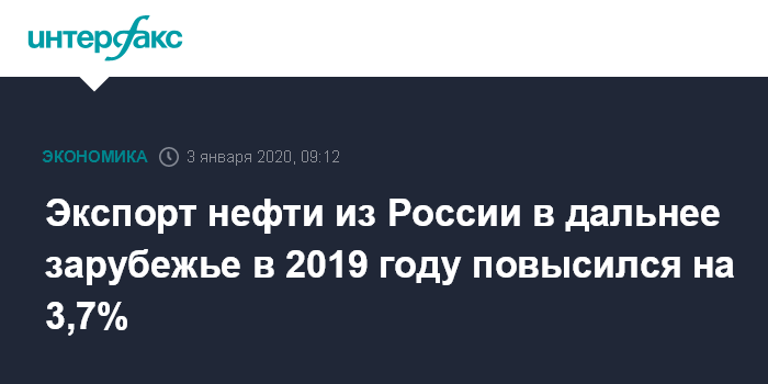 Экспорт нефти из России в дальнее зарубежье в 2019 году повысился на 3,7%