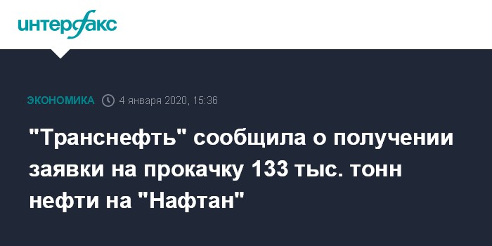 "У нас есть заявка на прокачку на "Нафтан" 133 тыс. тонн нефти, что мы и сделаем в ближайшее время", - сообщил "Интерфаксу" советник президента монополии, пресс-секретарь Игорь Демин.