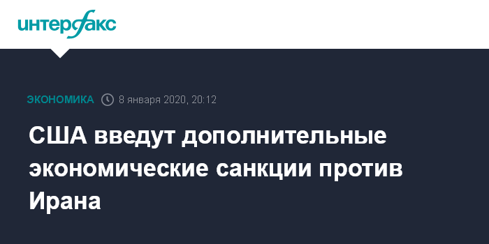 Москва. 8 января. INTERFAX.RU - Президент США Дональд Трамп объявил о решении применить новые экономические санкции против Ирана.