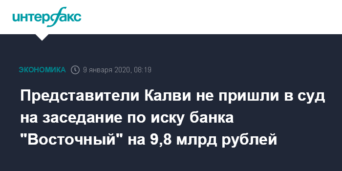 Представители Калви не пришли в суд на заседание по иску банка "Восточный" на 9,8 млрд рублей