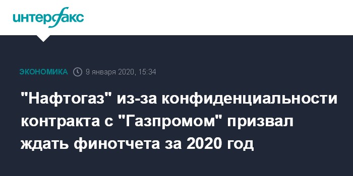 "Нафтогаз" из-за конфиденциальности контракта с "Газпромом" призвал ждать финотчета за 2020 год