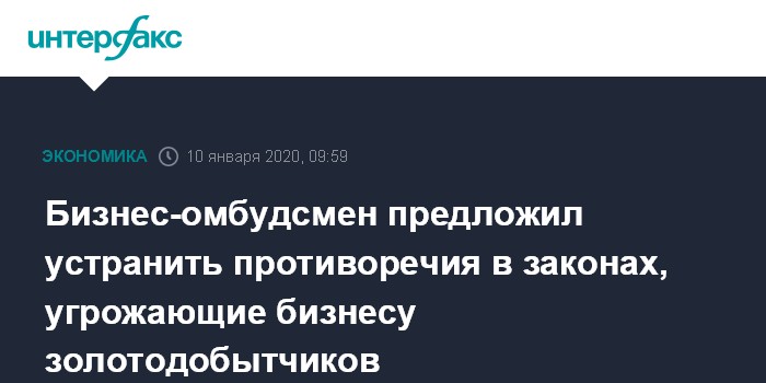 Бизнес-омбудсмен предложил устранить противоречия в законах, угрожающие бизнесу золотодобытчиков