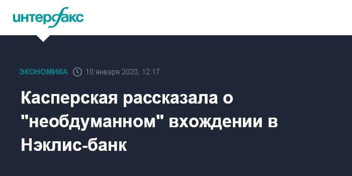 Касперская рассказала о "необдуманном" вхождении в Нэклис-банк