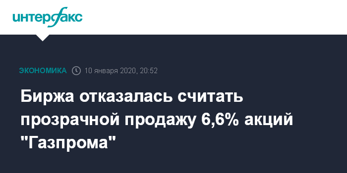Биржа отказалась считать прозрачной продажу 6,6% акций "Газпрома"