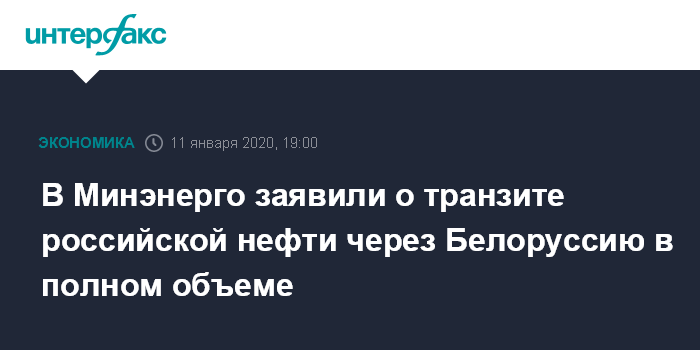 В Минэнерго заявили о транзите российской нефти через Белоруссию в полном объеме