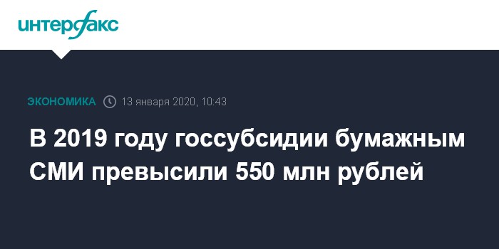 В 2019 году госсубсидии бумажным СМИ превысили 550 млн рублей