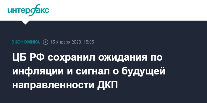 Москва. 15 января. INTERFAX.RU - ЦБ РФ сохраняет сигнал о будущей направленности денежно-кредитной политики (ДКП): будет оценивать целесообразность дальнейшего снижения ключевой ставки в первом полугодии 2020 года.