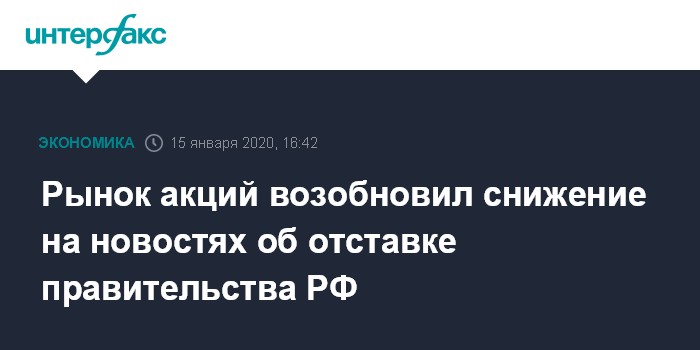 Рынок акций возобновил снижение на новостях об отставке правительства РФ
