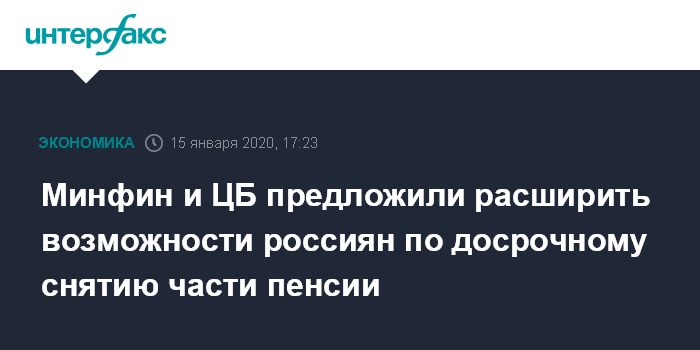 Минфин и ЦБ предложили расширить возможности россиян по досрочному снятию части пенсии