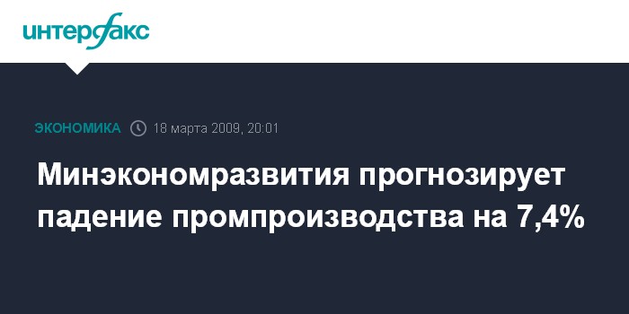 Москва. 18 марта. ИНТЕРФАКС - Министерство экономического развития РФ прогнозирует падение промышленного производства в 2009 г. на 7,4%, говорится в пресс-релизе, опубликованном на сайте правительства РФ.
