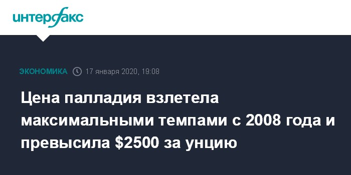 Цена палладия взлетела максимальными темпами с 2008 года и превысила $2500 за унцию