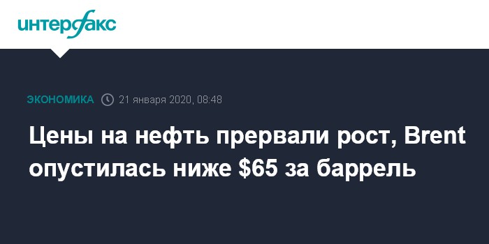Цены на нефть прервали рост, Brent опустилась ниже $65 за баррель