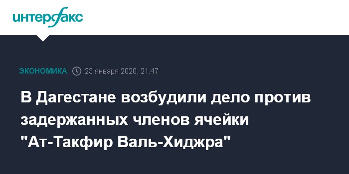 Москва. 23 января. INTERFAX.RU - Следственные органы в Дагестане возбудили уголовное дело в отношении задержанных членов ячейки запрещенной в России международной экстремисткой организации "Ат-Такфир Валь-Хиджра". Об этом сообщил агентству "Интерфакс" старший помощник руководителя СУ СКР по региону Расул Темирбеков.