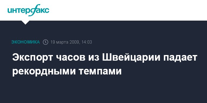 Москва. 19 марта. INTERFAX.RU - Экспорт дорогих часов из Швейцарии падал в феврале рекордными темпами - на 22%, наиболее резко снизились поставки в Россию, США и Саудовскую Аравию, сообщило агентство Bloomberg со ссылкой на данные Федерального таможенного управления Швейцарии.