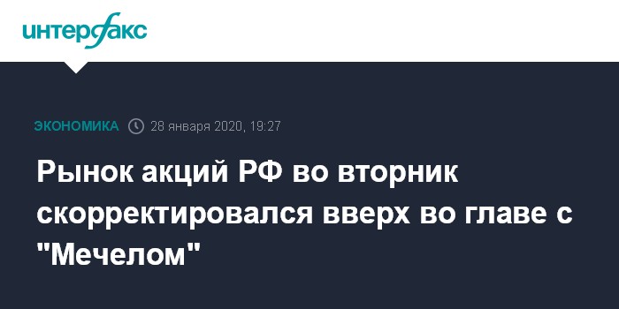 Москва. 28 января. INTERFAX.RU - Рынок акций РФ во вторник скорректировался вверх вслед за мировыми площадками после отката на опасениях по поводу распространения коронавируса в Китае и других странах, индекс МосБиржи отскочил выше 3110 пунктов, при этом лидировали в росте не входящие в расчет индексов бумаги "Мечела" на новостях.