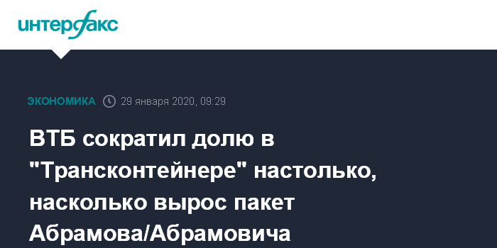 ВТБ сократил долю в "Трансконтейнере" настолько, насколько вырос пакет Абрамова/Абрамовича