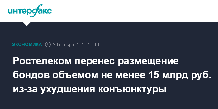 Ростелеком перенес размещение бондов объемом не менее 15 млрд руб. из-за ухудшения конъюнктуры
