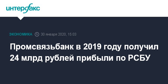 Промсвязьбанк в 2019 году получил 24 млрд рублей прибыли по РСБУ