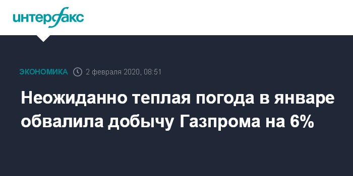 Неожиданно теплая погода в январе обвалила добычу Газпрома на 6%