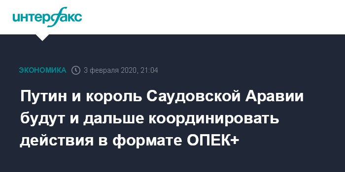 Путин и король Саудовской Аравии будут и дальше координировать действия в формате ОПЕК+