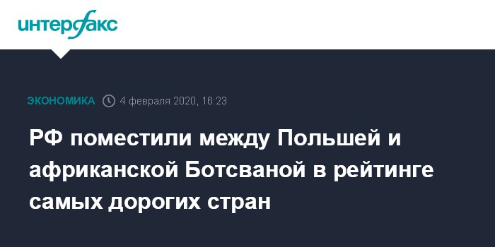 РФ поместили между Польшей и африканской Ботсваной в рейтинге самых дорогих стран
