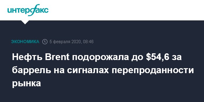 Нефть Brent подорожала до $54,6 за баррель на сигналах перепроданности рынка