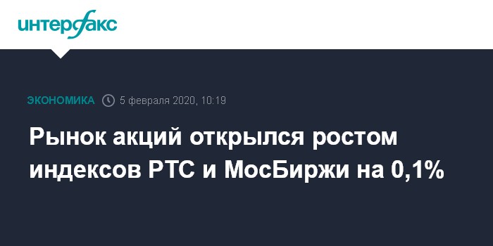 Москва. 5 февраля. INTERFAX.RU - Рынок акций РФ на старте торгов в среду сохранил восходящий импульс предыдущего дня на фоне выросших внешних фондовых площадок на надеждах, что принятые Китаем меры позволят ограничить ущерб для экономики от вспышки коронавируса; индексы МосБиржи и РТС за минуту торгов прибавили по 0,1%.