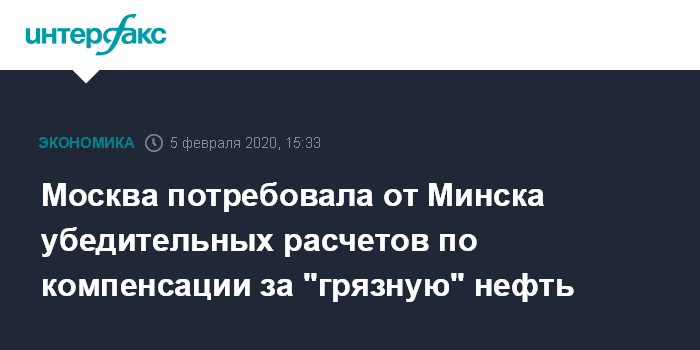 Москва потребовала от Минска убедительных расчетов по компенсации за "грязную" нефть
