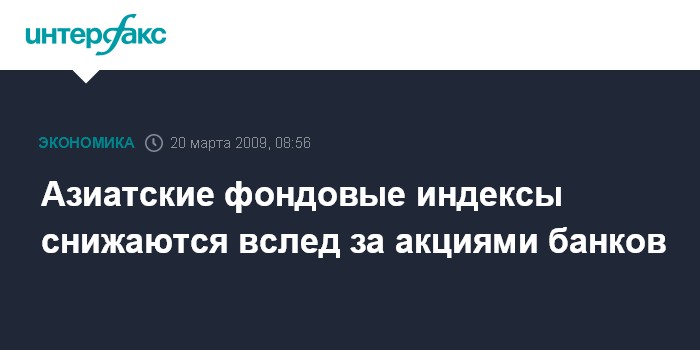 Азиатские фондовые индексы снижаются вслед за акциями банков
